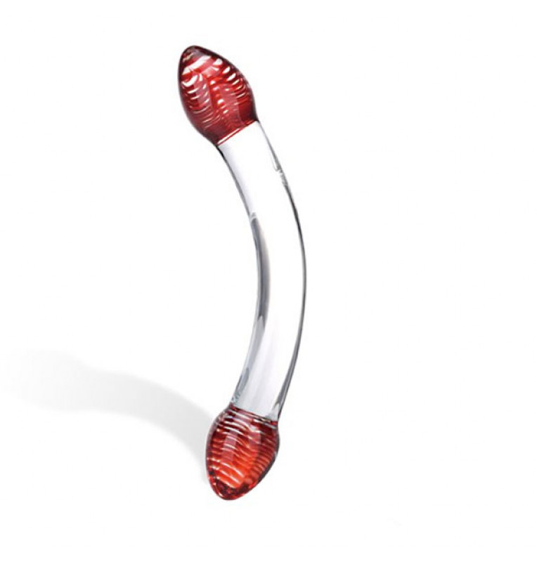 Роскошный двойной стимулятор из прозрачного стекла с красным узором на головках. Изогнутая форма позволит легко найти точку G. Общая длина: 22 см. Диаметр головок: 4 см. Диаметр ствола: 2,5 см.