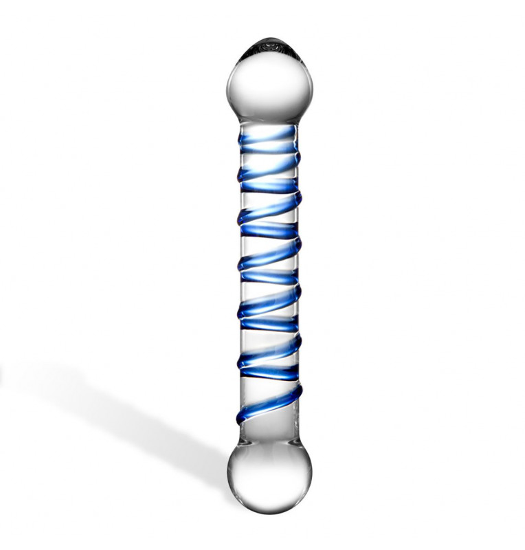 Элегантная игрушка ручной работы для взрослых. Прозрачная с выпуклыми синими спиралями вдоль ее стержня, чтобы добавить уникальное ощущение волнения. Spiral Dildo изготовлен из тщательно разработанного, прочного и безопасного для тела боросиликатного стекла. Он имеет эргономичный дизайн для удобного введения и увеличенную головку для максимального удовлетворения. Спиральный фаллоимитатор создан для легкого ухода, может сочетаться со всеми доступными смазочными материалами и очищается с мылом и водой.