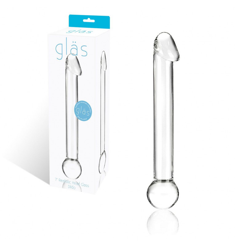 Стеклянный дилдо с реалистичной головкой - 16 см.