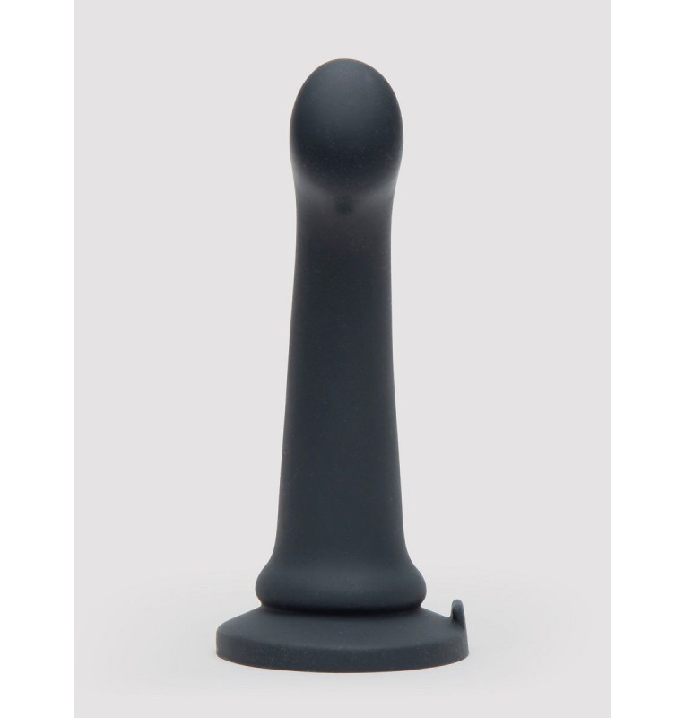 Черный фаллоимитатор Feel It Baby Silicone G-Spot Dildo. В основании присоска, благодаря которой можно либо зафиксировать игрушку на плоскости, либо вставить в пояс/трусики с фиксацией насадок кольцом.
