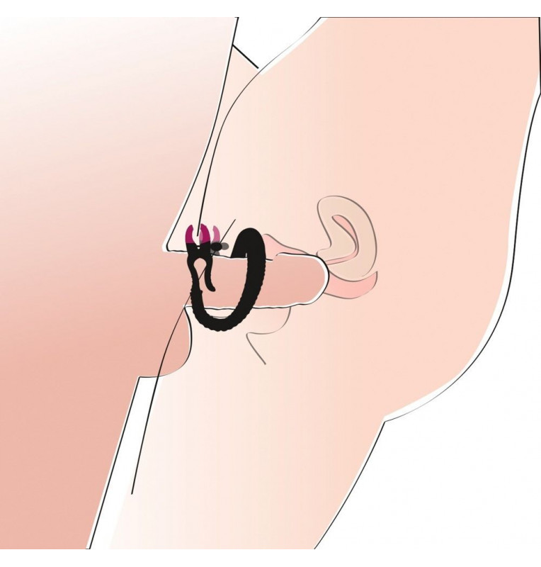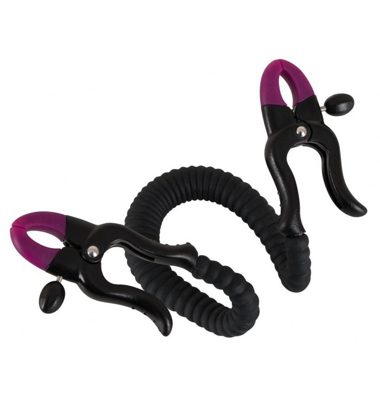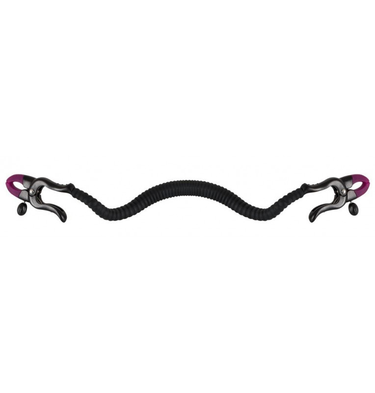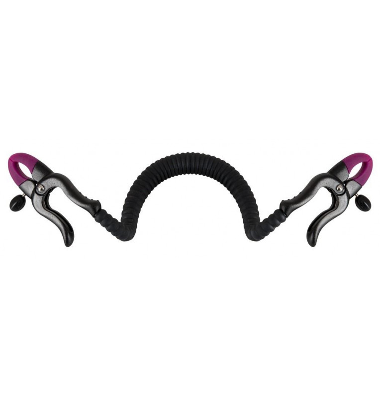 Зажим на половые губы с гибкой перемычкой для G-стимуляции. Под силиконовой оболочкой скрывается металлический хребет.