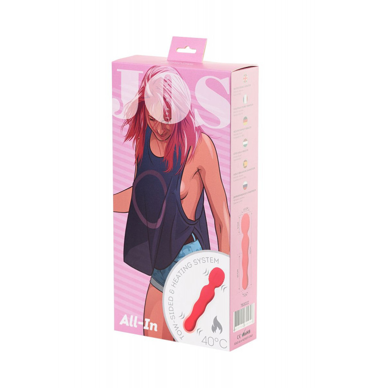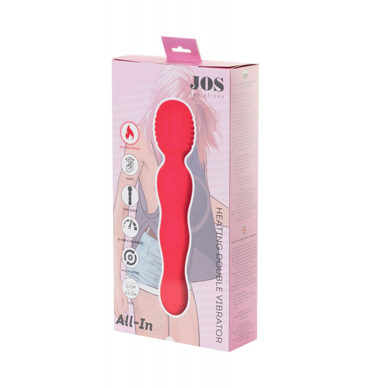 Розовый двусторонний вибратор с подогревом All-In - 21 см.