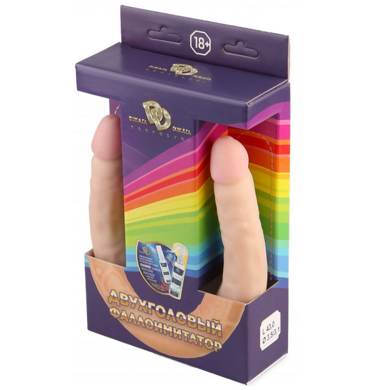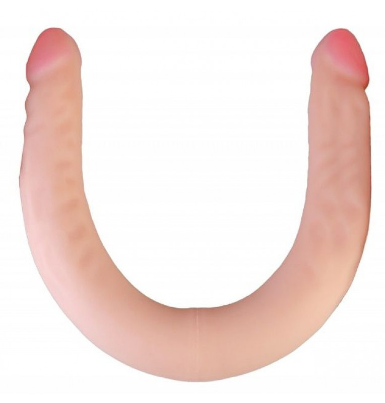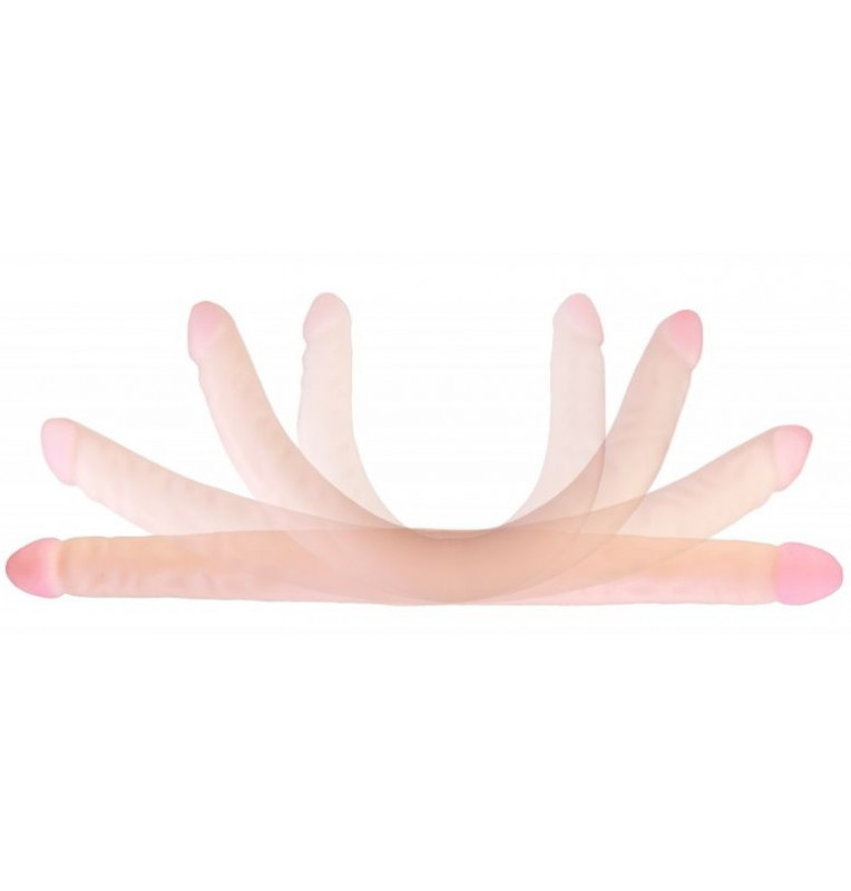 Телесный двухсторонний фаллоимитатор-реалистик - 42,5 см.