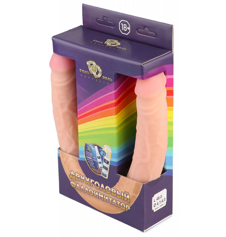 Телесный двухсторонний фаллоимитатор-реалистик - 49,5 см.