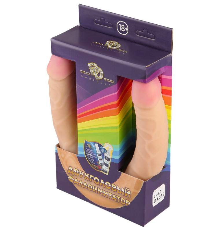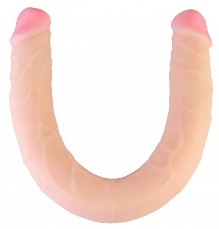 Телесный двухсторонний фаллоимитатор-реалистик -48 см.