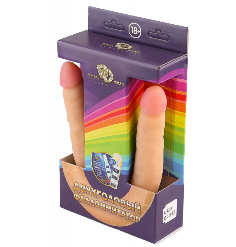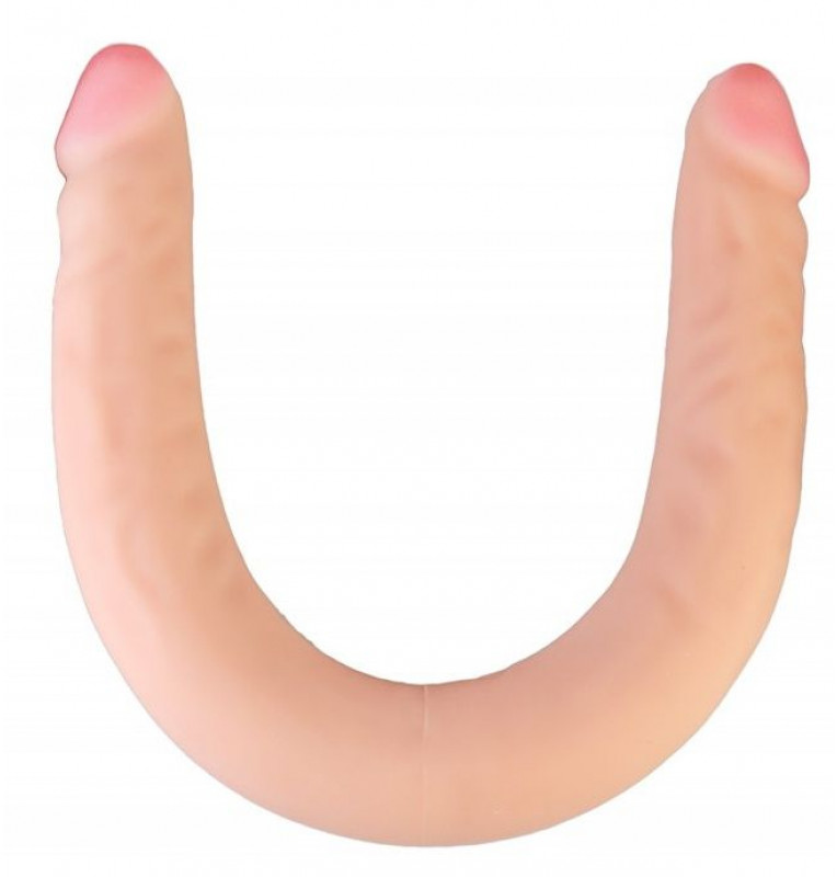 Телесный двухсторонний фаллоимитатор-реалистик - 43 см.