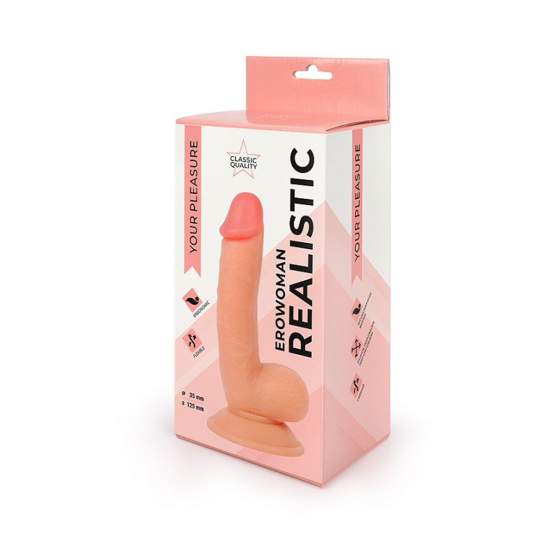 Великолепный фаллоимитатор-реалистик Erowoman займёт достойное место в любой коллекции секс-игрушек! Основные плюсы изделия - это прекрасное качество исполнения точная имитация всех деталей - чётко выраженная головка и мошонка, хорошо прорисованные венки и складочки естественный оттенок поверхности прочная присоска, позволяющая закрепить интимный аксессуар на ровной поверхности в горизонтальном или вертикальном положении. Фаллоимитатор изготовлен из мягкого материала, дарящего приятные тактильные ощущения. Прост в использовании и уходе. Рабочая длина - 12,5 см.