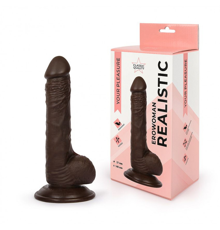 Реалистичный фаллоимитатор Erowoman коричневого цвета