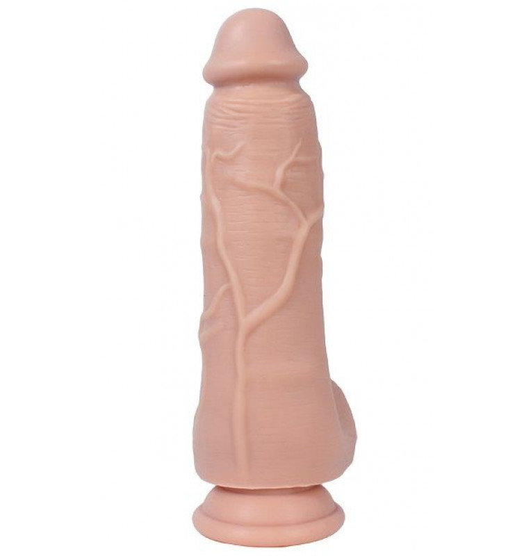 Реалистичный фаллоимитатор REAL с мошонкой на присоске - 21 см.