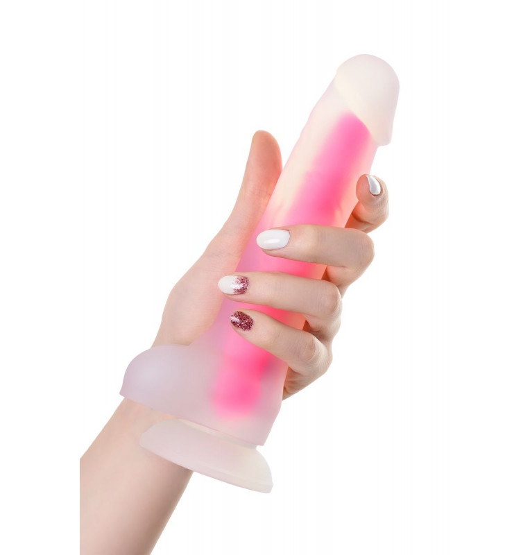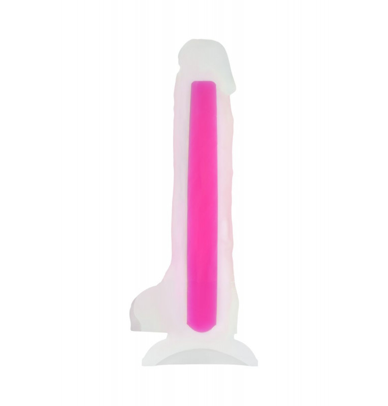 Прозрачно-розовый фаллоимитатор, светящийся в темноте, Tony Glow - 20 см.