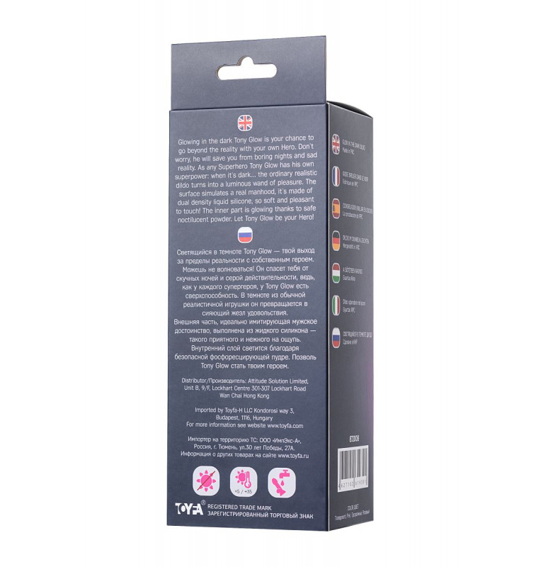 Светящийся в темноте Tony Glow — твой выход за пределы реальности с собственным героем. Можешь не волноваться! Он спасет тебя от скучных ночей и серой действительности, ведь, как у каждого супергероя, у Tony Glow есть сверхспособность. В темноте из обычной реалистичной игрушки он превращается в сияющий жезл удовольствия. Внешняя часть, идеально имитирующая мужское достоинство, выполнена из жидкого силикона — такого приятного и нежного на ощупь. Внутренний слой светится благодаря безопасной фосфоресцирующей пудре. Позволь Tony Glow стать твоим героем. Рабочая длина - 14,5 см.