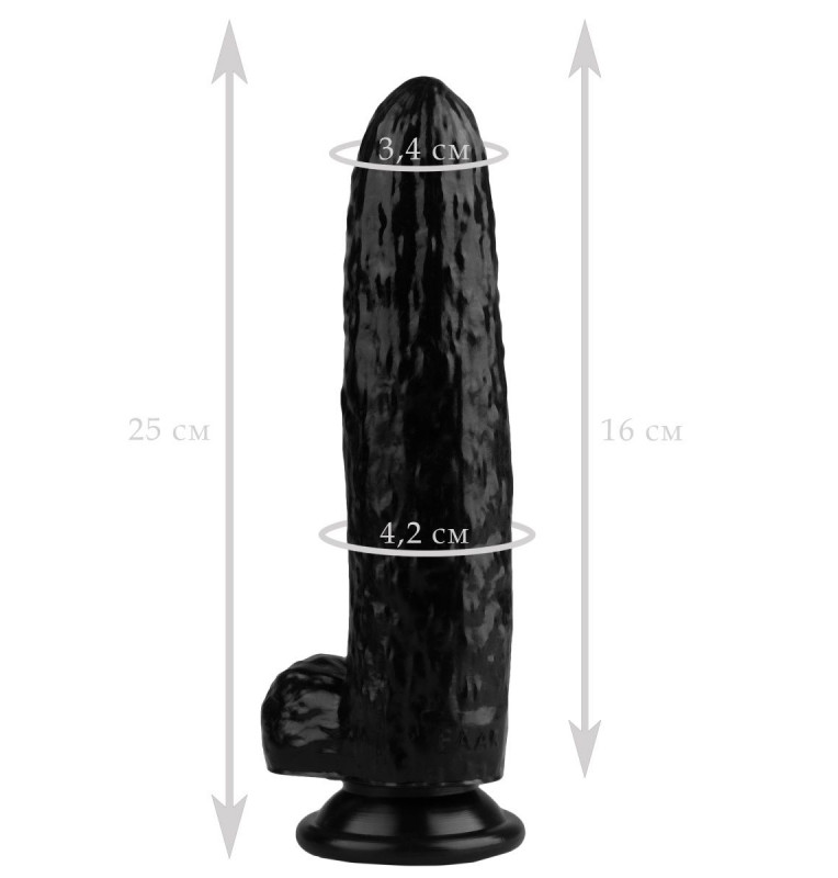 Черный фаллоимитатор-огурец на присоске - 25 см.