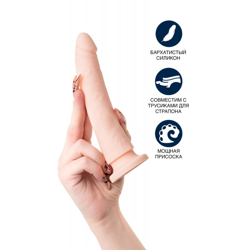 Классический фаллоимитатор Realstick Elite Silicone сочетает в себе уникальность ощущений и невероятную реалистичность. Гибкий ствол и мягкий бархатистый силикон делают проникновение нежным и комфортным. Гладкая нежная головка и рельефные вены обеспечивают дополнительную стимуляцию. В основании мощная присоска, которая позволяет крепить изделие на любой гладкой поверхности. Отлично подходит для использования с трусиками RealStick Strap-On. Дерзкий и стильный фаллоимитатор Realstick Elite Silicone подходит для тех, кто не готов идти на компромиссы и хочет для себя самого лучшего любовника. Рабочая длина - 16 см. Минимальный диаметр - 3 см.