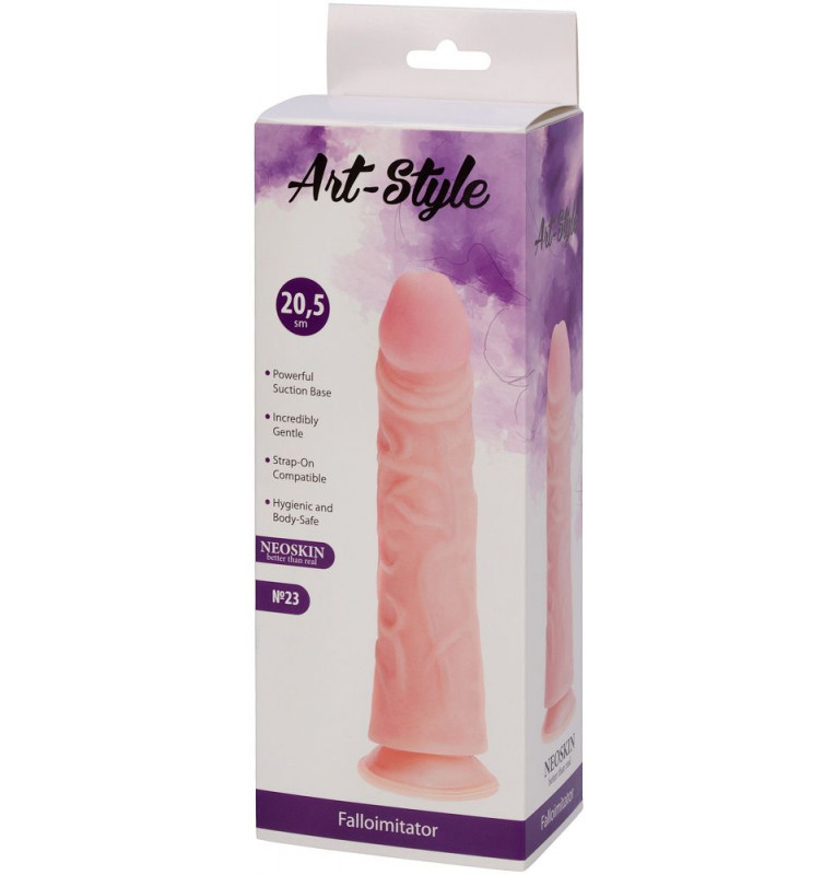 Упругий и рельефный фаллоимитатор на присоске ART-Style №23 - 21,5 см.