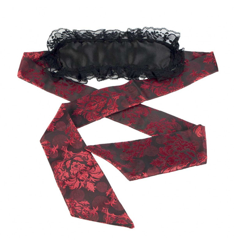 Чувственная маска на глаза из коллекции Scandal. Оригинальная маска из чувственной премиум-коллекции эротических аксессуаров Scandal. Шелковистая поверхность. Отделана гофрированным кружевом и завязывается на шикарные ленты, которые декорированы дизайнерским рисунком из блестящих красных нитей.