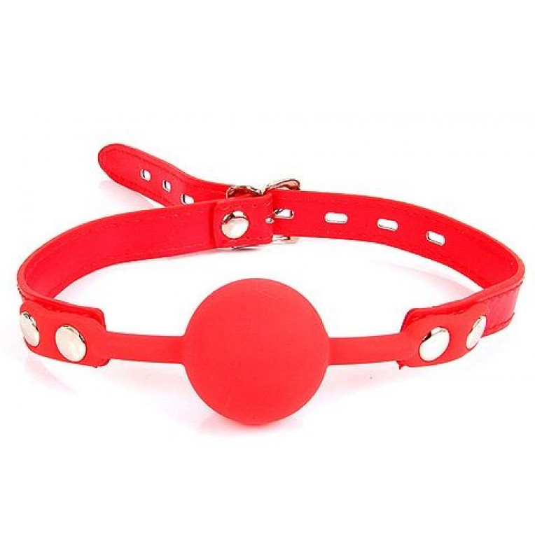 Красный силиконовый кляп-шарик на регулируемом ремешке