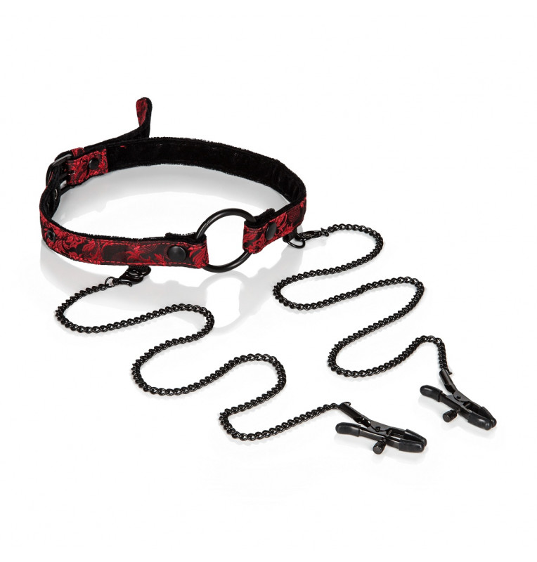 Кляп-рамка с зажимами на соски Scandal Open Mouth Gag with Clamps
