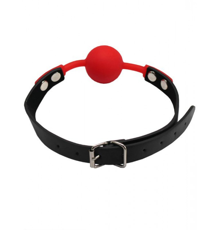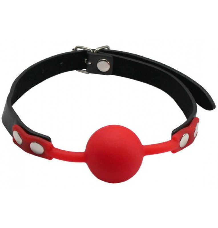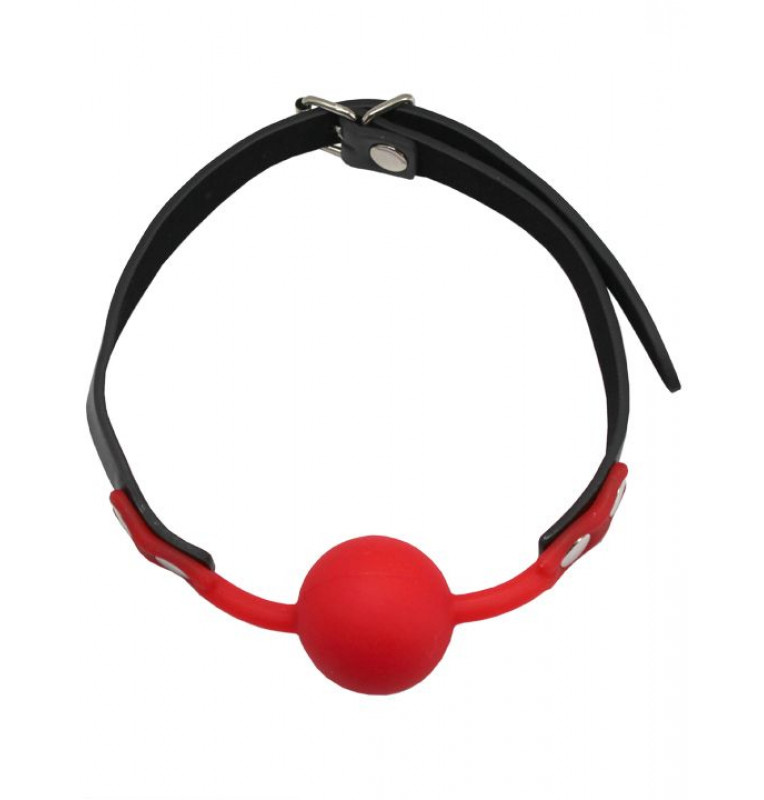 Красный силиконовый кляп-шарик с фиксацией на черных ремешках