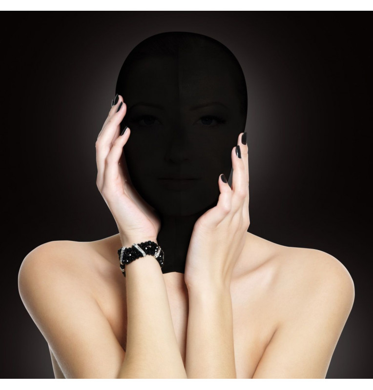 Это удобная маска, полностью закрывающая лицо, предназначена для натягивания на голову целиком. Она легко застегивается при помощи молнии сзади. Ткань пропускает небольшое количество света, что ослабляет зрение и стимулирует другие чувства. Тонкая, легкая ткань позволяет свободно дышать и слушать звуки шлепков.