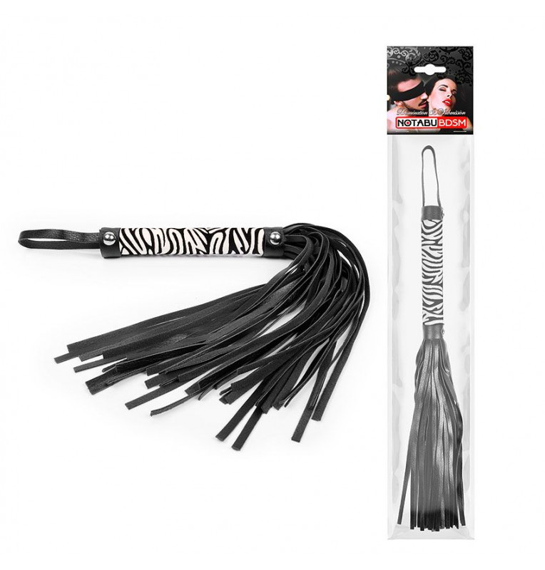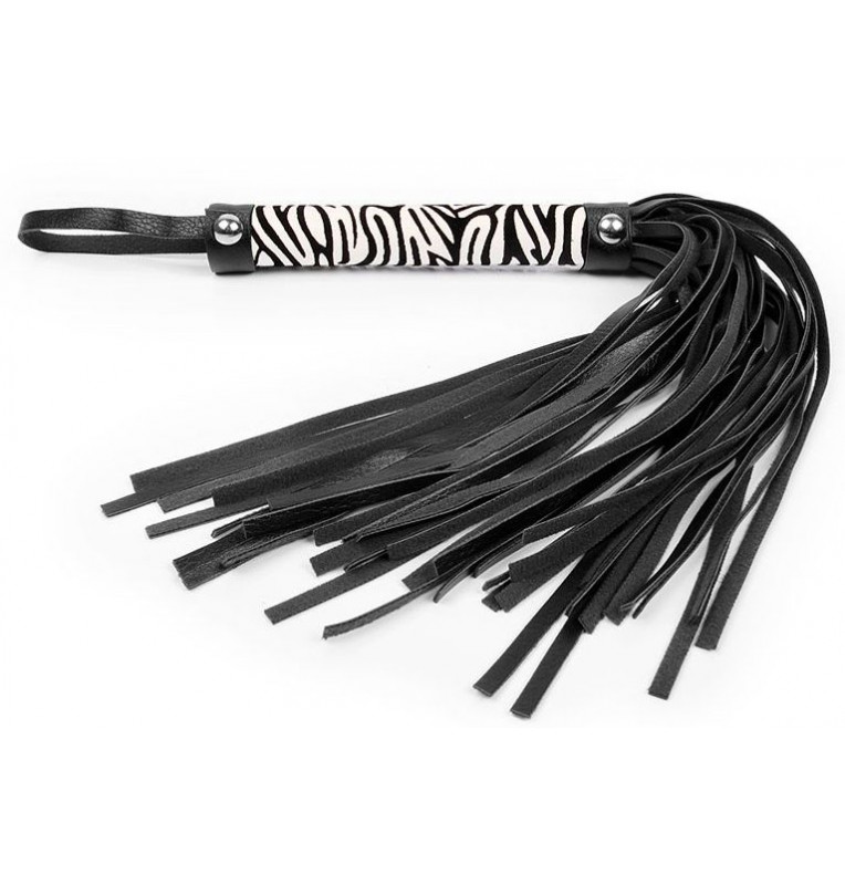 Черная многохвостовая плеть с круглой ручкой-зеброй - 39 см.