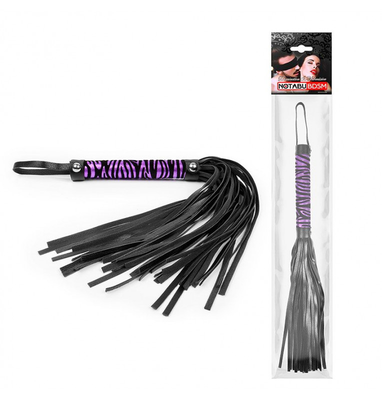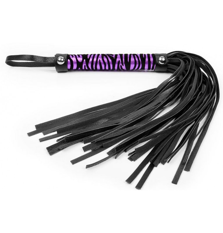 Черная многохвостовая плеть с круглой фиолетовой ручкой-зеброй - 39 см.