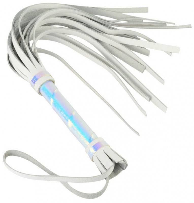 Белая кожаная плеть с перламутровым блеском - 40 см.