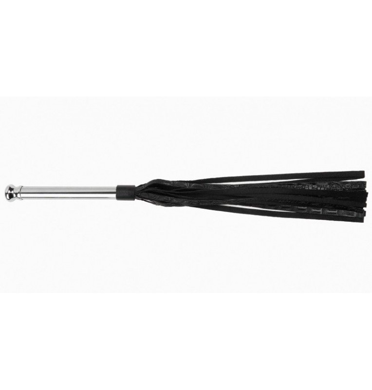 Черная многохвостая плеть с металлической ручкой - 44 см.