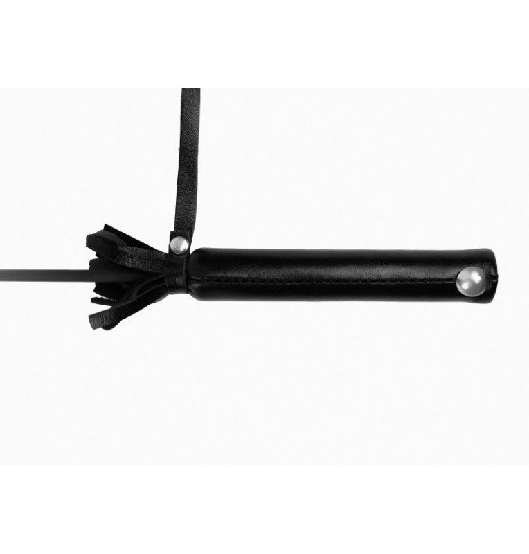 Хлесткий и изящный стек, который берет начало с лошадиных дерби, послужит прекрасным дополнением к образу строгой, но в тоже время элегантной госпожи в ролевом костюме или комплекте белья. Такая плеть может быть использована как для легких, однако весьма ощутимых шлепков, вызывающих прилив крови к эрогенным зонам, так и для указания направления движения нижнего, или его положения во время БДСМ-игр. Основательная хлопушка стека изготовлена из натуральной кожи высокого качества хлопушку и рукоять соединяет длинный, упругий, но прочный хлыст. Комфортное использование девайса обеспечивает кожаный ремешок, который позволяет дополнительно фиксировать стек на запястье. Длина шлепка - 8 см., ширина - 4 см.
