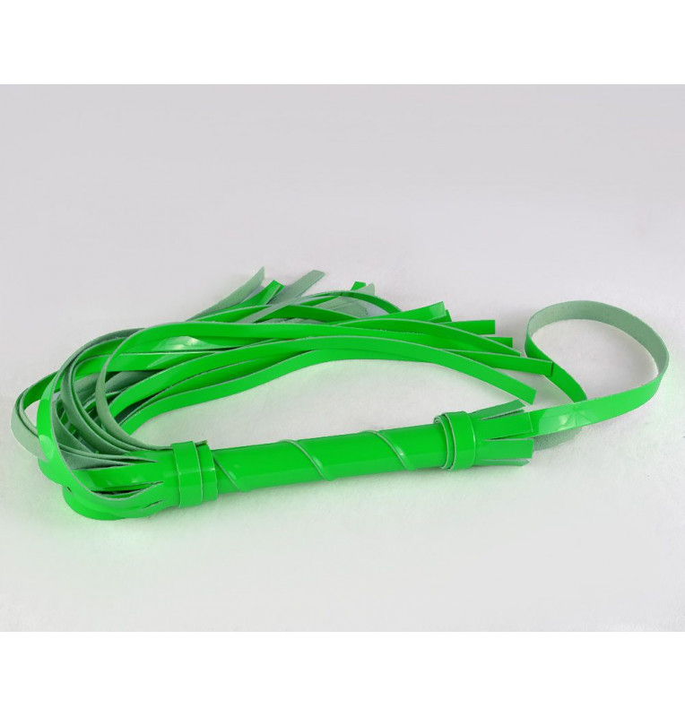 Салатовая гладкая многохвостая лаковая плеть - 40 см.