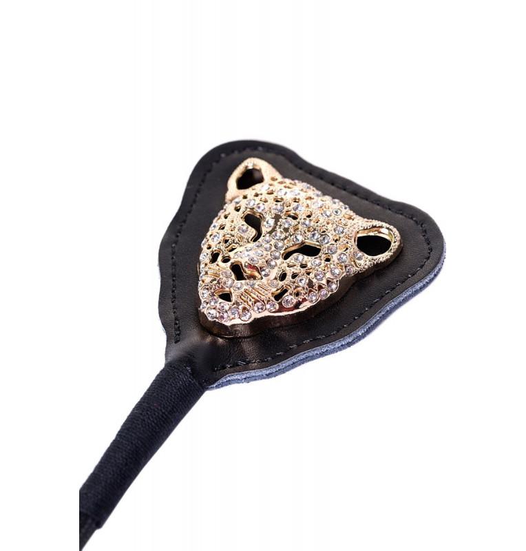 Стек с кожаным шлепком и украшением в виде головы леопарда. Стек с кожаным шлепком и украшением в виде головы леопарда — идеальное приспособлением для умеренных и сильных воздействий, а также стильный аксессуар для лёгкий ролевых игр. Какая бы задача ни стояла конкретно перед этим стеком — он с ней справляется на ура, доставляя массу приятных впечатлений. Небольшая рекомендация: при использовании стека для порки рекомендуется наносить удары по ягодицам, следя, чтобы кончик ударного атрибута не оставлял захлёстов.