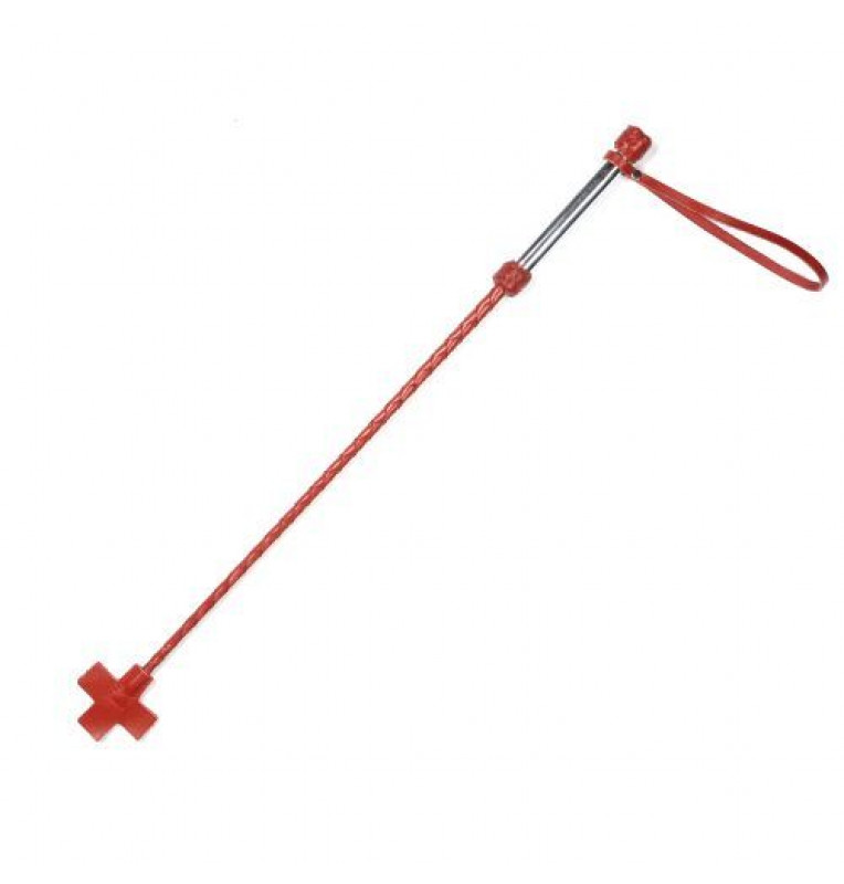 Красный стек с металлической рукоятью и крестообразным наконечником - 70 см.