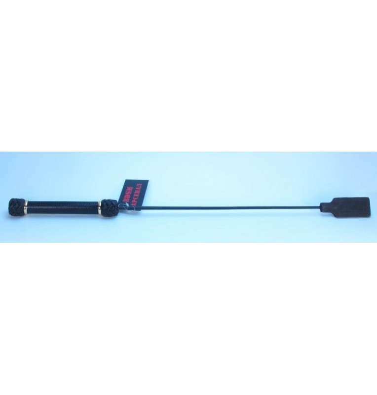 Стек сделан из прочного сердечника с оплетением из кожи. Наконечник в виде хлопушки из кожи для осуществления ударов. Также на ручке присутствует кожаная петля, которая позволяет закрепить стек при проведении наказания партнёра. Девайс отлично подходит для БДСМ игр. Мягкая и гибкая конструкция позволяет избежать повреждений тела даже при сильных ударах. Хлопушка сделана из подшитой кожи, рукоятка стека жёсткая, обшита кожей. Размеры хлопушки - 11 х 4 см.