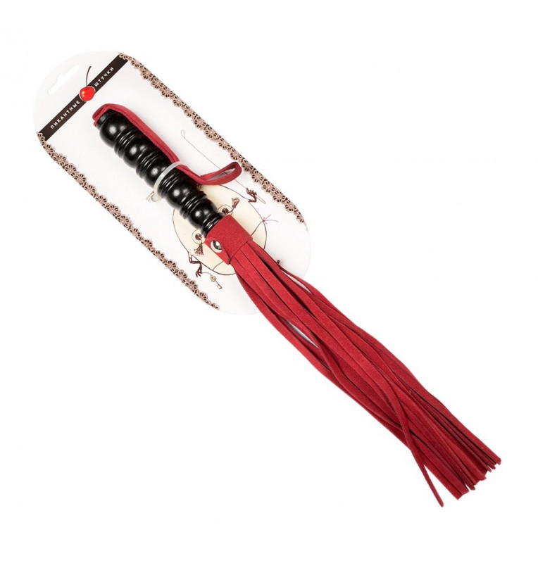 Небольшая плеть из замши. Выполнена в стильном бордовом цвете. Имеет жесткую рукоять и петлю. Общая длина 29 см. Длина плети 18 см. Длина хвостов - 18 см.