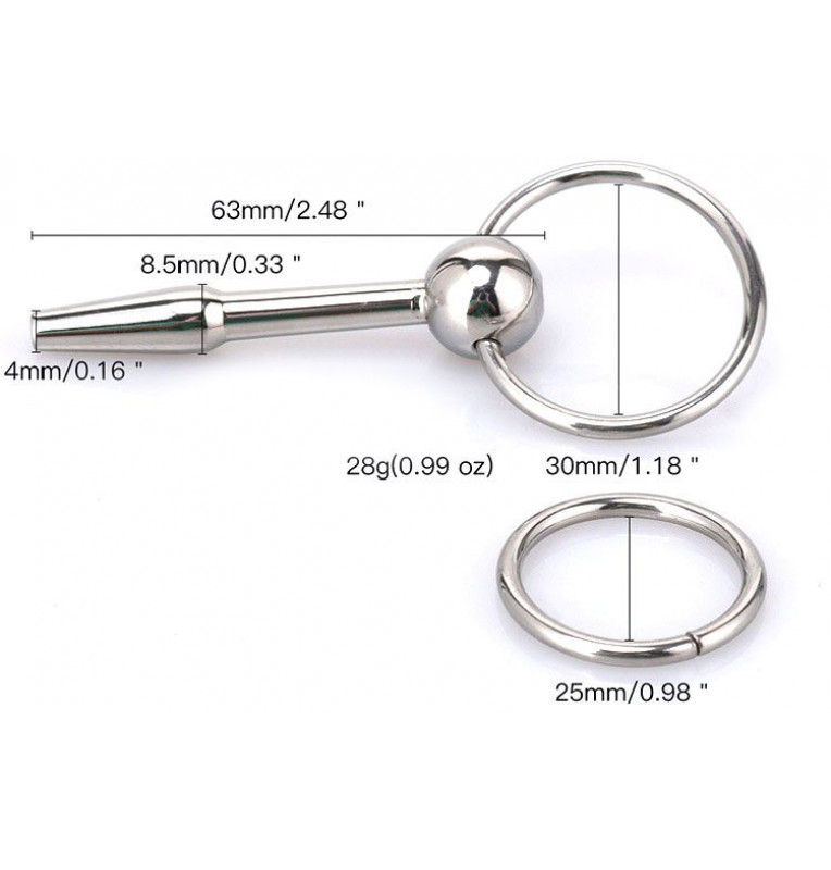 Уретральный катетер для стимуляции уретрального канала. Мужской катетер изготовлен из высококачественной медицинской стали, имеет рельефную структуру. Рабочая длина - 5 см. Минимальный диаметр - 0,4 см. Вес - 28 гр.