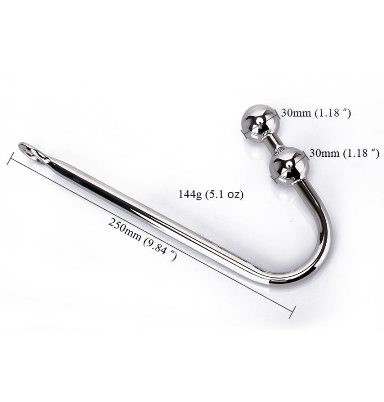 Серебристый анальный крюк с двумя шариками на конце. Длина ручки крюка - 25 см. Вес - 144 грамма.