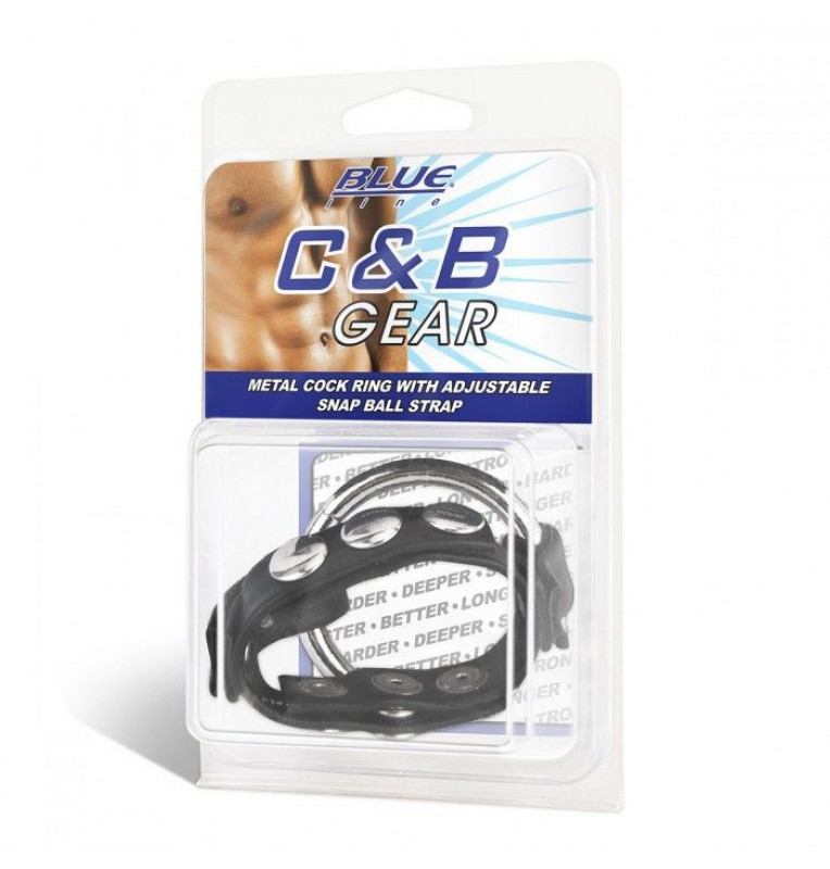 Это регулируемое кольцо с защелкивающимся клепочным ремнем прижимает член и мошонку, удерживая пенис металлическим кольцом.