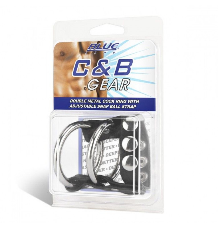 Двойное металлическое кольцо на пенис с регулируемым ремешком
