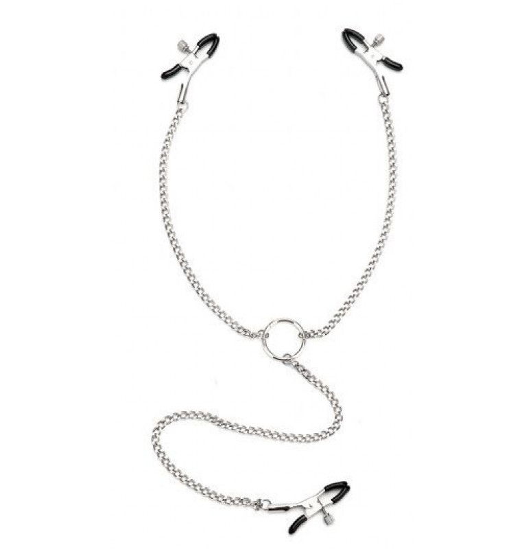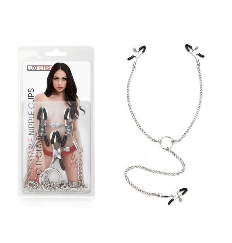 Серебристые зажимы для клитора и сосков с цепочкой