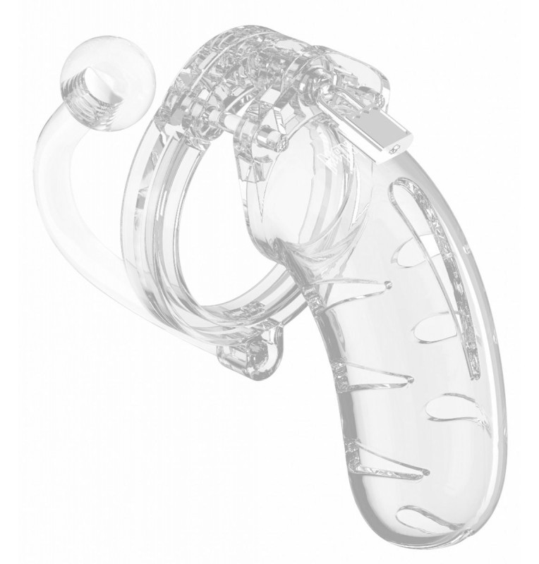 Прозрачный мужской пояс верности Cage With Plug 11 со съемной анальной пробкой