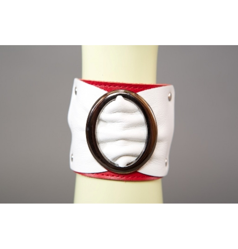 Бело-красный браслет с овальной пряжкой. Ширина - 6 см,