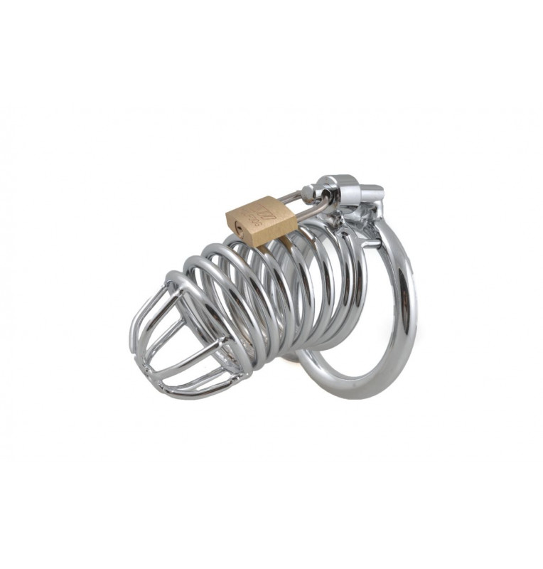 Брутальный аксессуар, который оценят все любительницы господства над мужчиной. Облачите своего партнера в эти оковы и выпустите на волю его член только тогда, когда вам будет это необходимо! Оковы для члена выполнены из хромированной стали. Оковы фиксируются с помощью маленького замочка. Ширина - 6,5 см.
