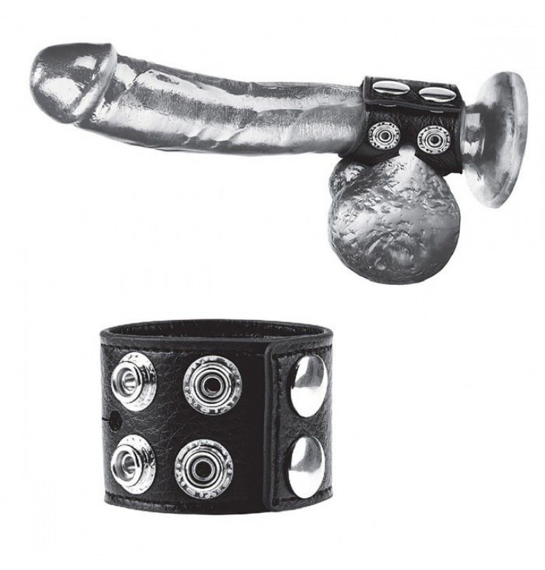 Ремень для члена из экокожи. Имеет 3 ряда кнопок для регулировки размера, по середине ремня отверстие для мошонки. Ширина - 4 см.