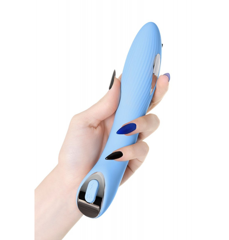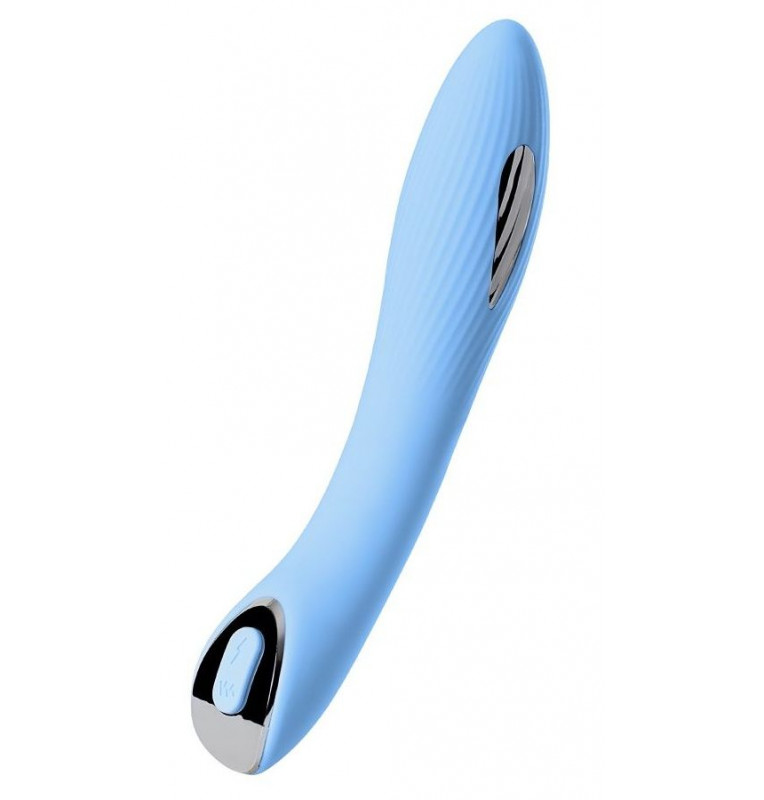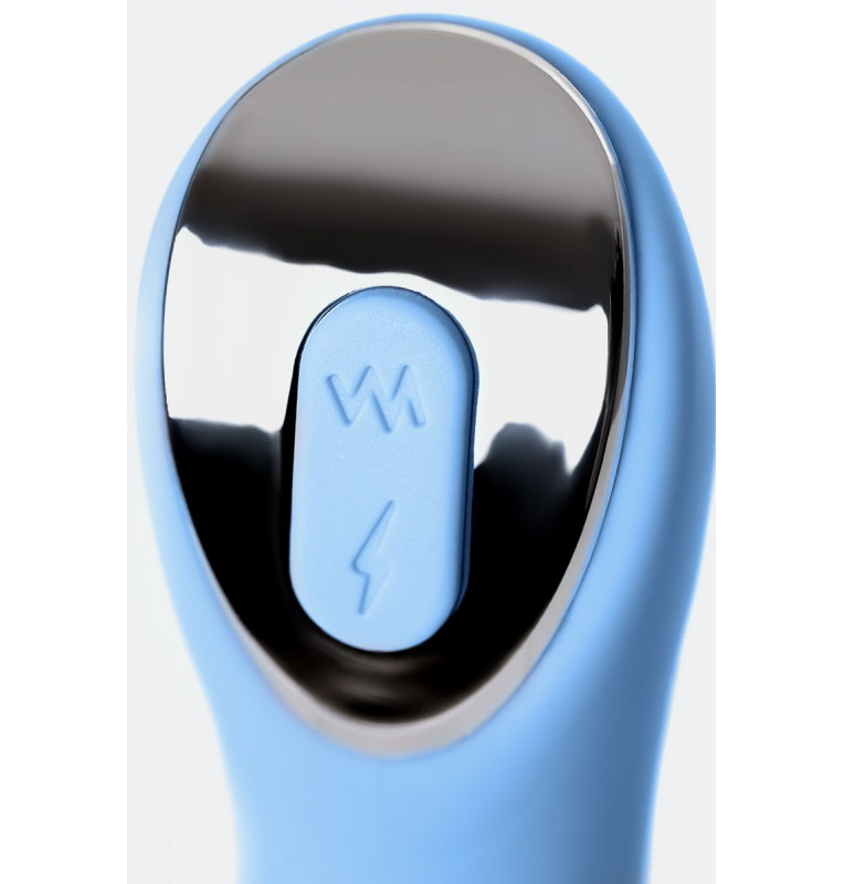Голубой силиконовый вибратор с электростимуляцией TESLA G-POINT - 21 см.