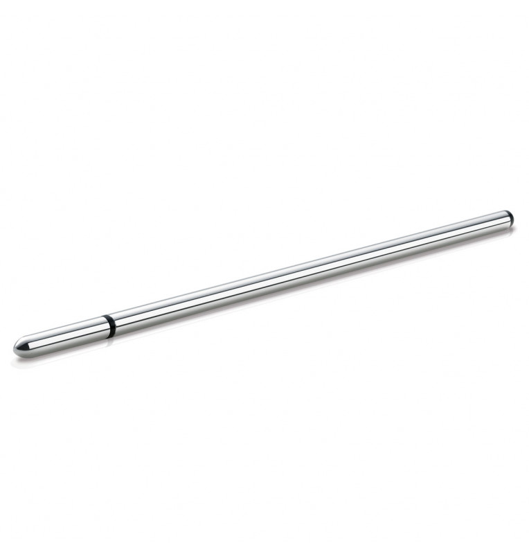 Этот уретральный зонд из отполированного медицинского алюминия предназначен для фаллостимуляции электротоком. Будучи подключённым к электростимулятору MyStim и введённым в мочеиспускательный канал, он гарантирует непередаваемые ощущения от электростимуляции. Покалывание, мощная пульсация внутри пениса… такого не забыть! Длина - 25 см. Диаметр - 0,8 см.