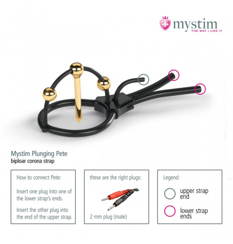 С этим лассо, выполненным из электропроводного силикона с добавлением платины, вы сможете получить все 33 удовольствия от электросекса. Достаточно ввести в уретру позолоченный зонд, затянуть утяжку вокруг головки и включить электростимулятор MyStim… И вас накроет волна возбуждения из-за покалывающих, а потом и пульсирующих ощущений!