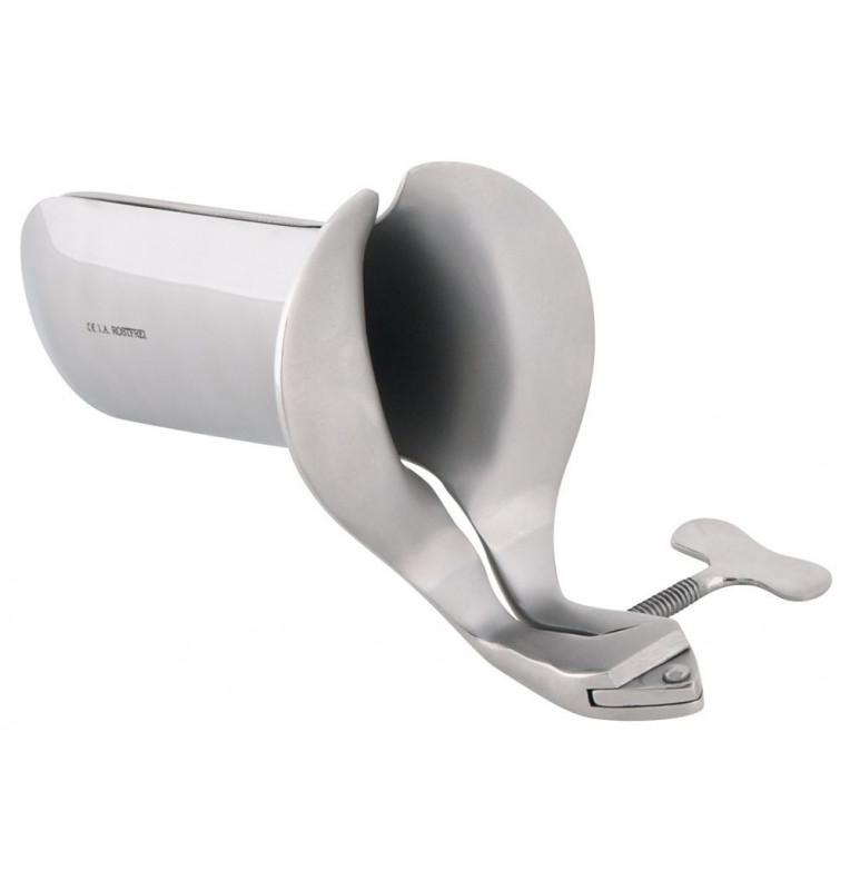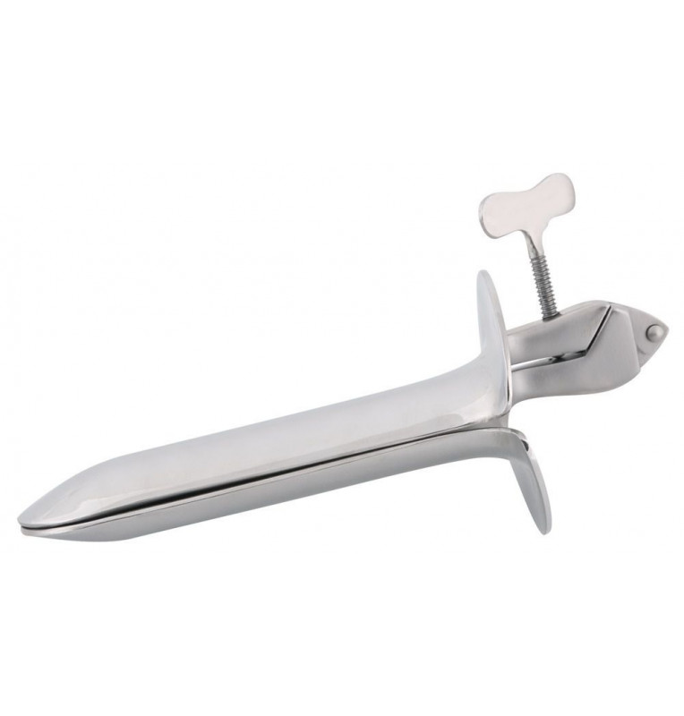 Гинекологическое зеркало-расширитель из металла. Благодаря этому отполированному девайсу вы сможете как следует рассмотреть центр похоти вашей партнерши. Широкие лепестки раскрываются на 10 см. Открытие и фиксация происходит винтом в основании. Зеркало выполнено из нержавеющей стали (полированное снаружи и матовое внутри). Рабочая длина - 10,5 см.