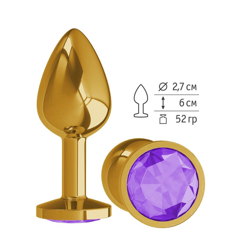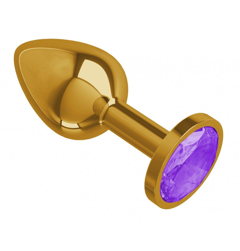 Золотистая анальная втулка с фиолетовым кристаллом - 7 см.