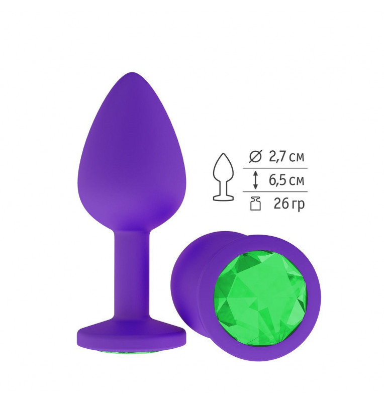 Фиолетовая силиконовая пробка с зеленым кристаллом - 7,3 см.