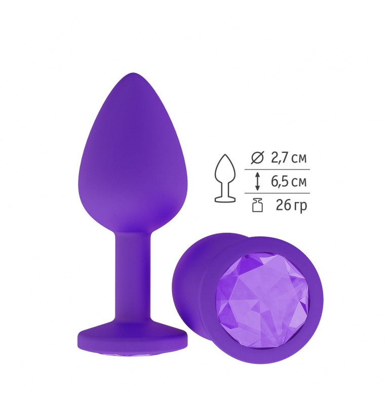 Фиолетовая силиконовая пробка с фиолетовым кристаллом - 7,3 см.