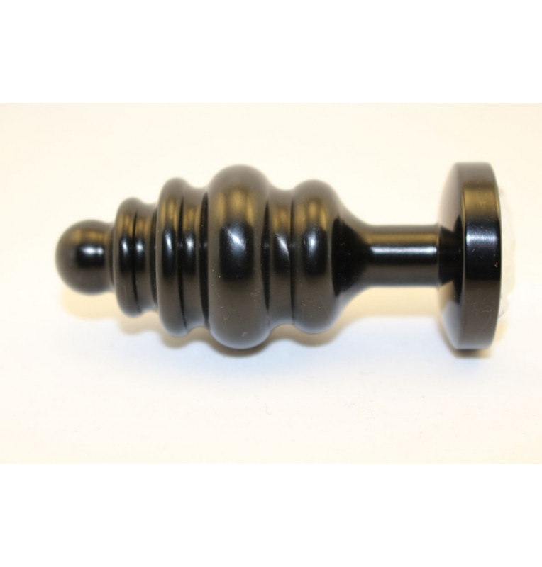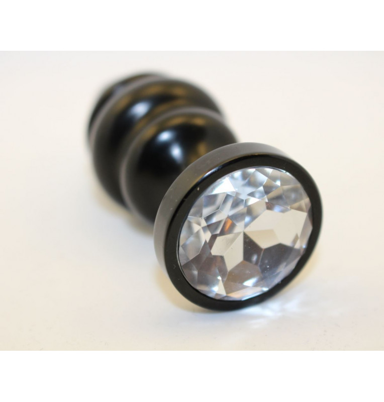 Черная фигурная анальная пробка с прозрачным кристаллом - 7,3 см.
